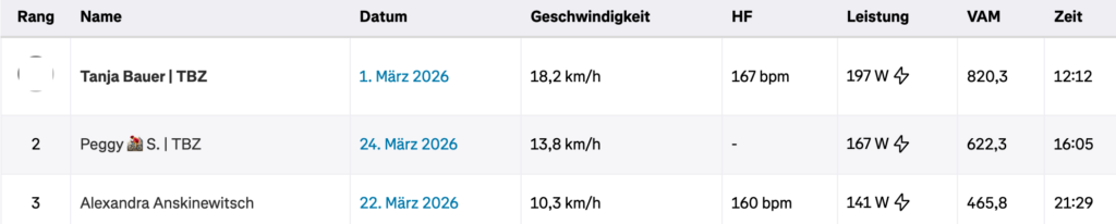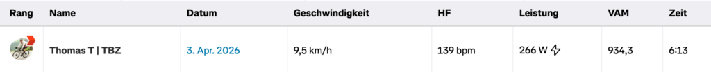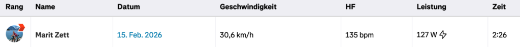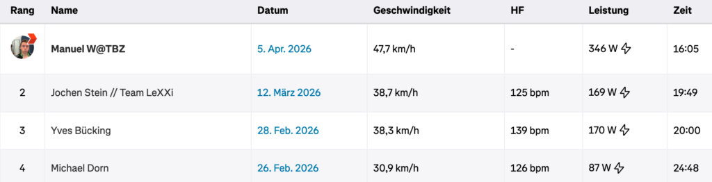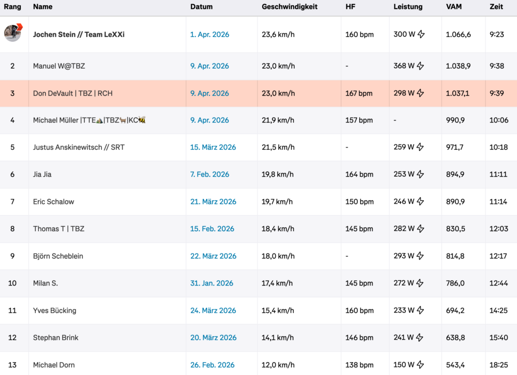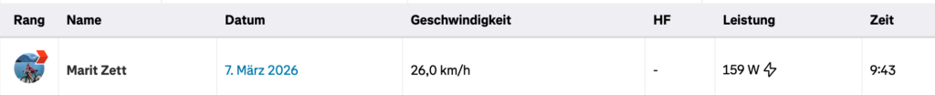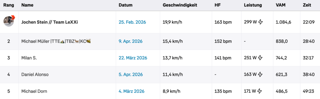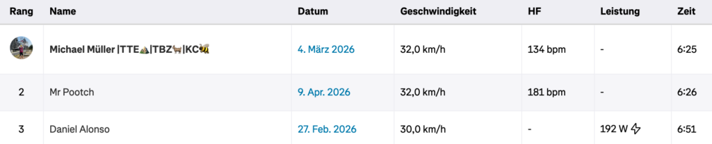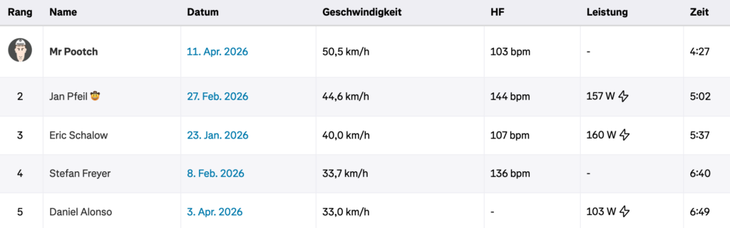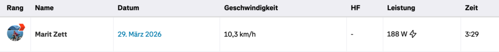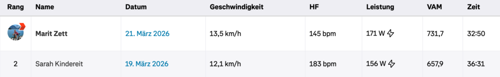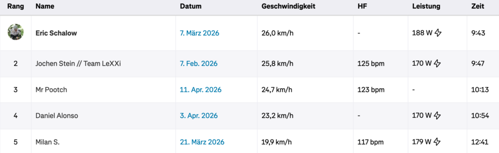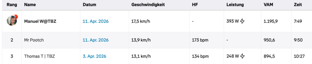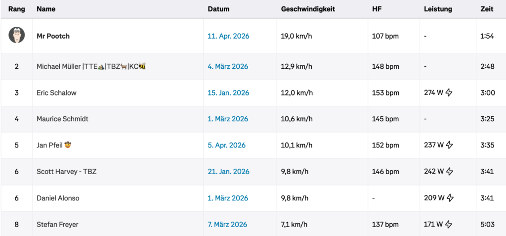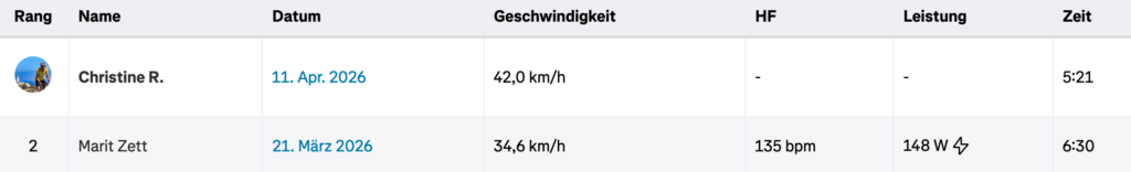 Zwischenstand der Segmentzeiten (2026-04-15)